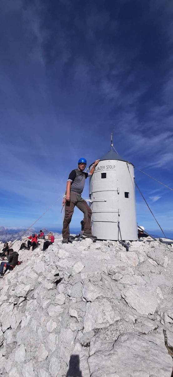 U domu smo prespavali i rano ujutro prije izlaska sunca, bojažljivo gledali u vrh Triglava da vidimo kako je raspoložen. A Triglav, kao pravi domaćin, raširio je gostoljubivo svoje ruke i primio nas u svoje naručje. Sve je bilo kao u nekom lijepom snu, nakon penjanja uz sajle i pridržavanja za klinove izašli smo uzbuđeni na vrh. Bez daha nas je ostavilo plavetnilo neba i u tom plavom beskraju Aljaževa kućica. Kroz glavu je proletila misao “Uspjeli smo” i preplavio nas je ogroman talas sreće. Nakon toga je uslijedilo fotkanje i uživanje u pogledu na okolne vrhove, kao glavna nagrada. Nismo mogli ostati dugo koliko smo željeli da se nagledamo ljepote Triglava, jer nas je čekao dugi put do autobusa, još oko 8 sati hoda.