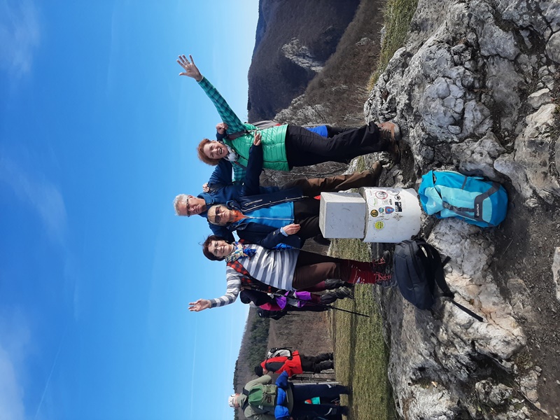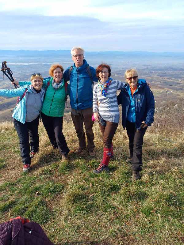 Nas četvoro Ivan, Olga, Ljiljana i ja, dobro raspoloženi za hodanje smo u 8 sati bili na polaznoj tački u Rajkovićima. Ruta je bila poznata Rajkovići - Kozarački kamen - Bešića poljana - Mrakovica u dužini oko devet kilometara. Vrijeme idealno za pješačenje, ne previše hladno, staza suha bez blata. Odmah na početku staze smo upoznali planinarku Sanju iz Doboja sa kojom smo se družili i koja nas je slikala za našu planinarsku sekciju. Prva pauza je bila nakon najzahtjevnijeg dijela staze na Kozaračkom kamenu. Kad smo zadihani i malo umorni izašli na Kozarački kamen obasjan suncem, pred nama je pukao pogled na predivan krajolik. To je bila nagrada za naš trud. Naravno odmah smo se slikali ispod zastave koja se ponosno vijorila na vjetru iznad nas. Kratki odmor i nastavili smo dalje. Zbog vjetra na Kozaračkom kamenu nismo doručkovali, već smo potražili zavjetrinu u jednoj lovačkoj kućici koja nam je spremno ponudila svoju sunčanu terasu. E onda je, kako kaže naša drugarica Ljiljana počeo najljepši dio planinarenja, doručak u prirodi. Ma kakav doručak prava gozba: suho meso, kobasice, slanina, dvije vrste sira, kiseli krastavci, crveni luk i prije svega čašica rakije kao aperitiv. Za desert su bili čupavci. Na doručku nam se pridružio i naš drugar planinar Milenko. Lijepo smo se okrijepili i kad smo krenuli i zapjevali smo. Milenko nam je pokazao prekrasni vidikovac na kojem smo se kratko uživali na suncu i slikali se naravno. Kroz priču i šalu, nogu pred nogu i oko pola jedan smo stigli do Mrakovice, gdje su nas naši domaćini dočekali sa planinarskim grahom iz kazana. Malo umorni, ali zadovoljni smo u slast pojeli grah i popili kuvano vino. Prošetali smo do spomenika i obišli spomen ploče nastradalih na Kozari. Tamo smo vidjeli vijenac od svježeg cvijeća koji su žrtvama fašističkog terora položili predstavnici udruženja AVNOJ-a iz Slovenije, Srbije i Istre. Tako smo se malo podsjetili istorije ovog kraja, poklonili se sjenama svih žrtava i poželjeli da se ovakve tragedije više ne dešavaju.