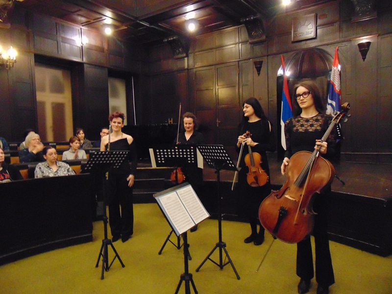 Povod je bio slovenački kulturni praznik – Prešernov dan. Kao i svake godine, Triglavci su se potrudili da Banjaluku i njene građane počaste nekim značajnim kulturnim događajem. Ovaj put je to bio nastup akademskih muzičara iz Banjaluke, predvođenih članicom našeg Udruženja, violončelistkinjom Lidijom Paulin. Pored Lidije, nastupale su: Marija Pilipović – flauta, Sonja Vojvodić - violina, Srna Majar - viola i Katarina Babić – violončelo. Izvedena su djela: W.A.Mozart: Kvartet za flautu, violinu,violu i violončelo, D-dur No.285; J.S.Bach: Svita za violončelo Br.3; Z.Kodaly: Duo za violinu i violončelo Op. 7. Vijećnica Banskog dvora bila je premalena da primi sve zainteresovane posjetioce, a mlade umjetnice su se potrudile da izvedba bude na vrhunskom nivou, tako da je njihov nastup nagrađen gromoglasnim aplauzom.