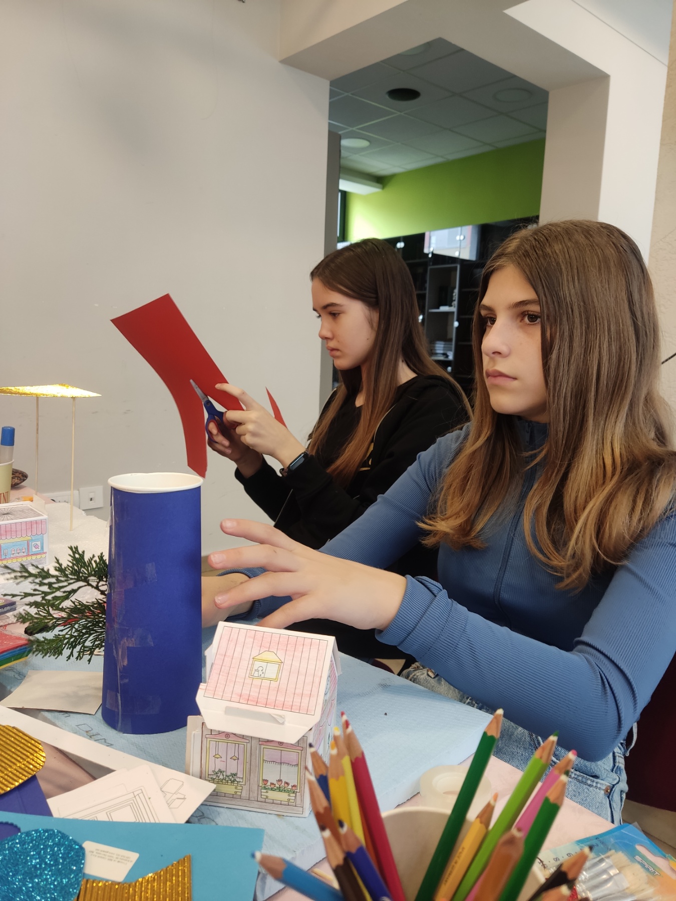 Nakon teorijskog rada uslijedilo je stvaranje ‘gregorčeka’. Učenici su sa sobom ponijeli materijal za izradu ukrasa i nastali su vrlo lijepi radovi. Lukin otac Saša Perić nam je pomogao da to napravimo.