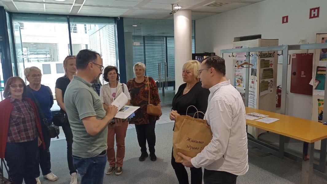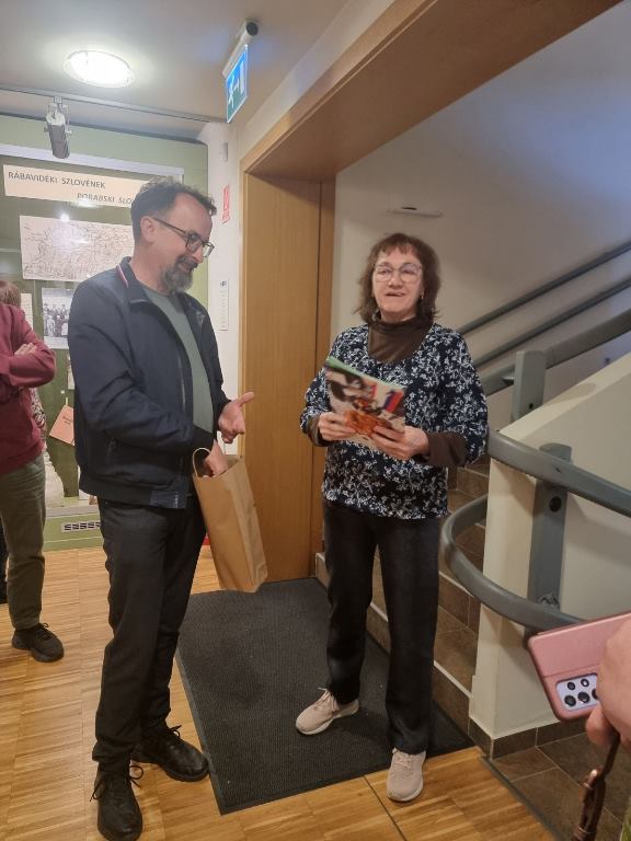 Na put u Porabje smo krenuli u srijedu, 14.05.2025. godine i prva stanica nam je bila Regionalna i studijska biblioteka u Murskoj Soboti. To je centralna regionalna biblioteka za Opštinu Murska Sobota, odnosno za 12 opština (između ostalih i za Beltince, Hodoš, Kuzmu, Moravske Toplice i dr.) te zavičajna biblioteka za Prekmurje, Prlekiju i Porabje. Biblioteka ima odjel za učenje, opšte obrazovanje i mlade, a prikuplja slovenačke štampane materijale, naučnu, stručnu i književnu literaturu i druge materijale o regiji, posebno starije slovenačke pomurske štampane materijale i literaturu na mađarskom jeziku. Osigurava redovan protok slovenačke literature u slovenačko Porabje u Mađarskoj i razmjenjuje naučnu literaturu s mađarskim i austrijskim bibliotekama. Naši domaćini, bibliotekarka Metka Celec i zamjenik direktorice Albert Halász su nas kratko upoznali o radu biblioteke i brojim projektima u koje su uključeni.