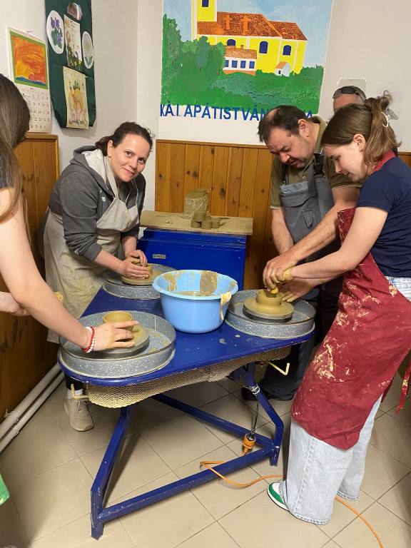 Drugi dan posjete, u četvrtak 15.05.2025. godine, nakon doručka smo posjetili DOŠ Števanovci gdje su nam učenici Melissa i David predstavili školstvo, tradiciju i običaje, jela i uopšte život slovenačke zajednice u Porabju nekad i sad. U zanimljivim prezentacijama, mogli smo vidjeti koliko su se uslovi života promijenili nabolje i koliko su se očuvali tradicija, običaji i hrana. Domaćini su nam pripremili i dvije zanimljive radionice i to, grnčarsku radionicu i radionicu izrade cvjetića od krep papira. Svi smo učestvovali i upoznavali proces izrade ukrasa i tehnika koje treba primijeniti da bi oni bili što ljepši, a svako je sebi ponio ono što je napravio za uspomenu. Na grnčarskoj radionici smo uz pomoć pravog majstora grnčarije, nako odmah a neko i nakon nekoliko pokušaja, uspjeli napraviti zdjelice, šoljice, tanjiriće koje će nam učiteljica Metoda nakon sušenja i pečenja donijeti u Banjaluku u narednom periodu.