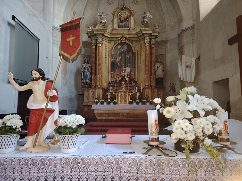 Sveta misa se služi na slovenskom jeziku jednom mjesečno, a slovenska molitva je prisutna i na mađarskim misama. Orgulje su 2007. godine napunile sto godina, a u to vrijeme je obavljena i njihova restauracija. Od 2010. godine liturgiju prati stalni crkveni hor. Ispred crkve se nalaze veličanstvene lipe, koje mjestu daju jedinstvenu atmosferu i u čijem hladu smo i mi uživali tokom naše posjete.