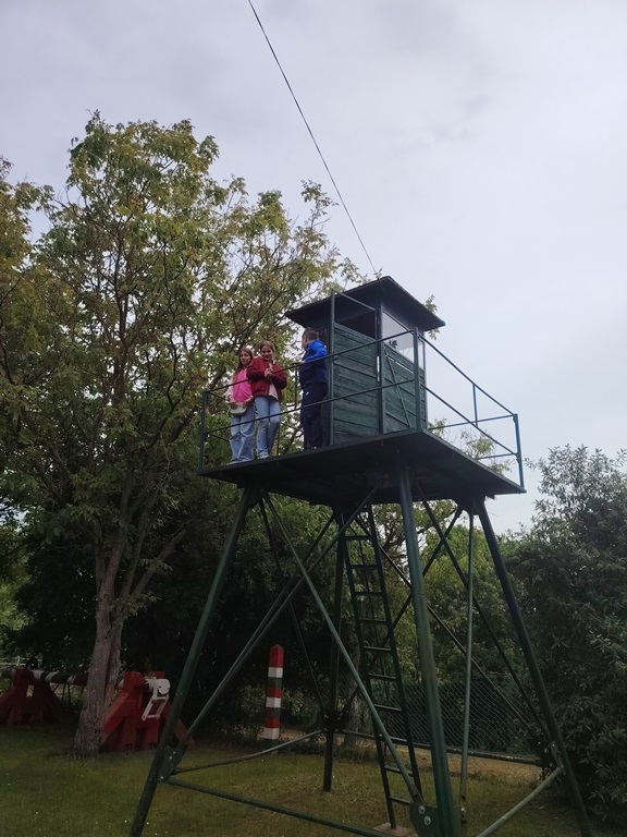 Nakon radionica, otišli smo u Graničarski muzej u Števanovcima, gdje smo u bivšoj karaveli, na stalnoj muzejskoj izložbi, dobili uvid u svakodnevni život graničara, koji su ovdje služili do 2006. godine. Vidjeli smo dežurnu sobu sa cijelom telefonskom centralom, kao i uniforme i oružje, te predmete iz 1970-ih i 1980-ih: jakne stražara, čizme, boce za vodu, patrolne torbe, opremu za hemijsku zaštitu i još mnogo toga. Zanimljiv predmet iz najsurovijih vremena "Gvozdene zavjese" je "obuća" koja se koristila za prevaru graničara: jelenska kopita vezana za cipele, ostavljajući lažne životinjske tragove. Još jedan neobičan eksponat je sveska u kojoj su zabilježena imena onih mještana koji su prijavili ili pomogli u hvatanju ilegalnih prelaznika granice. U dvorištu smo vidjeli terensko vozilo Lada Niva, granični kamen, kabinu graničara i kratki dio zauzetog graničnog pojasa s bodljikavom žicom. Izložena je i originalna granična rampa s prelaza Hegyeshalom prema Austriji, pa čak i amfibijsko vozilo koje se koristilo za patroliranje jezerom Nežidar i njegovom okolinom.