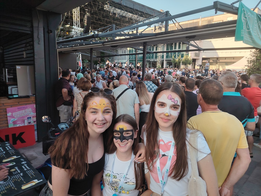 Nakon povratka na Svetu Goru i ručka, ponovo smo se vratili u Novu Goricu gdje je bila postavljena bina za nastupe u okviru manifestacije Dobrodošli doma. U 16h je počeo program koji je otvorio orkestar Slovenaca iz Kaknja, nastupili su i Slovenci iz Sarajeva a zatim i naš dječiji folklor. Iako je bio veoma topao dan, osmijeh sa lica naših mladih folkloraša nije silazio. Nakon nastupa, obišli smo i štandove na kojima su bili predstavljeni gosti iz različitih zemalja kao i Kancelarija za Slovence po svijetu. Za svakoga je bilo po nešto, hrane i pića, slatkiša, oslikavanja lica i fotografisanja uz simpatične rekvizite. U međuvremenu je naš hor imao jedan nastup u Novoj Gorici kao dio sedmice kulture, a zatim i drugi u Kromberku, na proslavi na kojoj je prisustvovao i predsjednik Vlade Republike Slovenije g. Robert Golob i sa kojim se predsjednik Udruženja Triglav imao priliku sastati.