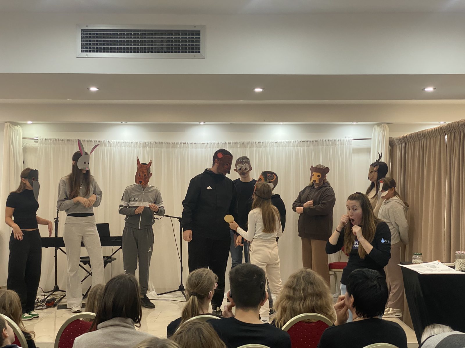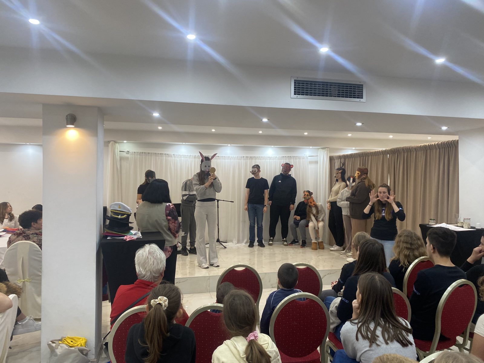 Za nastup na festivalu, na dodatnoj nastavi napravili smo maske 10 šumskih životinja i sa njima nastupili u kratkoj predstavi adaptiranoj prema poznatoj bajci Grigora Viteza, Ogledalce.