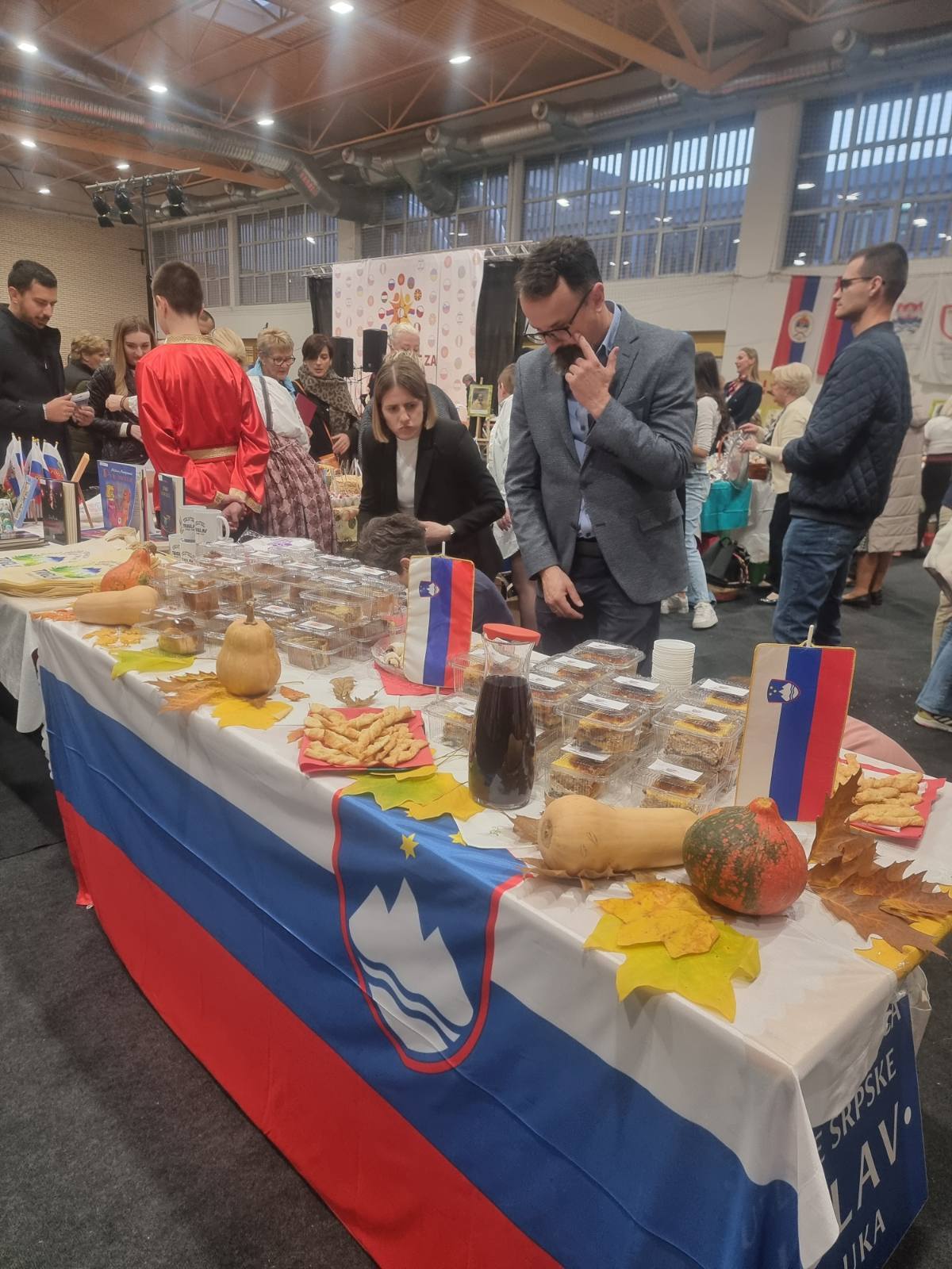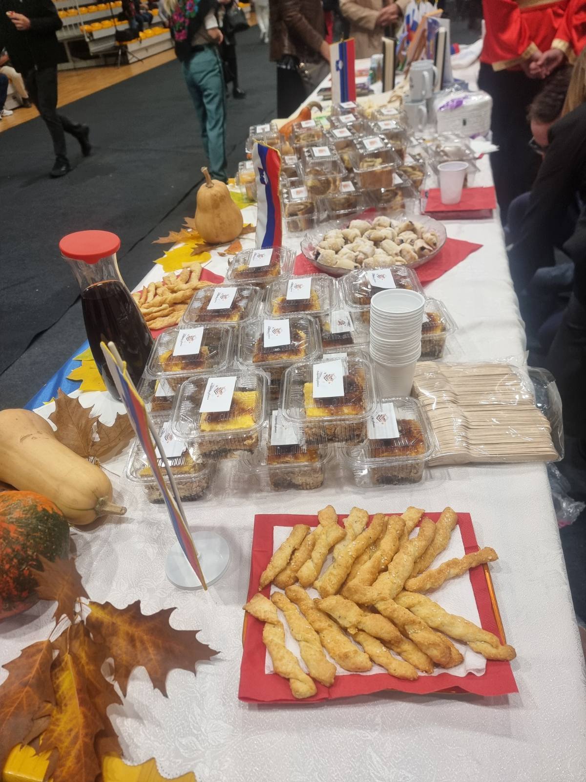 Štand slovenačke manjine krasile su prepoznatljive slovenačke slastice – prekmurska gibanica i orahova štrudla, koje su, zahvaljujući kulinarskom umijeću vrijednih članica Ljiljane Memon i Olge Delić, rasprodane još prije kraja programa. Posebnu pažnju privukao je i promotivni materijal našeg Udruženja – šolje za čaj, platnene i eko cegere sa simbolom i natpisom Udruženja „Triglav“, koje je za ovu priliku dizajnirao naš Luka Babić.