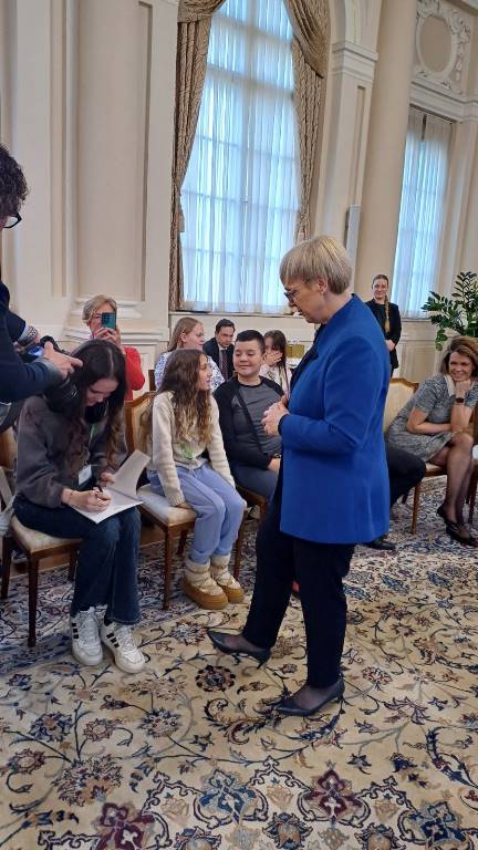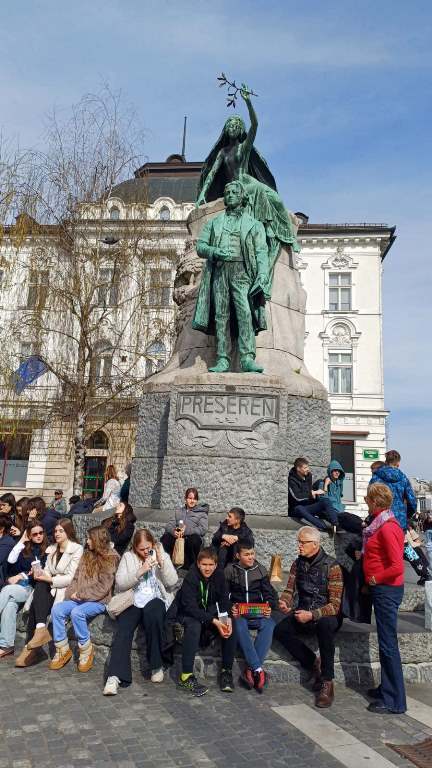 Prvi dan putovanja odmah je bio ispunjen raznim događajima i uzbuđenjima. Po dolasku u Ljubljanu, imali smo priliku istražiti i malo bolje upoznati prijestolnicu Slovenije, ali i saznati nešto više o kulturi, običajima i tradiciji. Taj dan smo imali čast da nas u Predsjedničkoj palati primi predsjednica Republike Slovenije, gđa Nataša Pirc Musar i uživali u razgovoru sa njom. Susret je protekao u prijatnoj i inspirativnoj atmosferi, a učenici su predsjednici predstavili svoje znanje slovenačkog jezika te podijelili utiske o učenju i povezivanju sa Slovenijom. Na taj način su pokazali kako čuvaju slovenački jezik, kulturu i identitet. Učenici su joj imali priliku uputiti interesantna pitanja i čuti kako ona vidi odnose između Slovenije i BiH. Predsjednik Ivan Memon joj je prilikom predstavljanja Udruženja „Triglav“ uručio dvojezične knjige i biltene koje je izdalo naše Udruženje uz posebnu napomenu da je autorica dvojezične slikovnice „Pod morem“ učenica Milica Marjanović bila među posjetiocima te joj je predsjednica čestitala i zamolila je da joj potpiše primjerak.