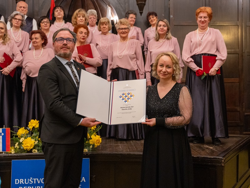 Ambasador Republike Slovenije u BiH, NJ.E. Damijan Sedar je uručio Priznanje i Zahvalnicu MePZ „Davorin Jenko“ za neprocjenjivi doprinos u čuvanju slovenačke pjesme i nacionalnog identiteta među sunarodnicima u Banjaluci, u ime Kancelariji Vlade Republike Slovenije za Slovence po svijetu, koje je primila dirigentica Vanja.