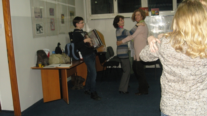 Tako smo već u petak, 18.1. i subotu, 19.1.2013 izveli PRVU PLESNU RADIONICU, koja se održala u prostorijama Udruženja u Banjoj Luci. Okupilo se 35 djevojčica i dječaka, koji su spremni sarađivati u grupi i upoznati se sa slovenačkom narodnom tradicijom. Da bi rad bio lakši iz Novog mesta su nam se pridružili aktivni članovi OFS: Ana, Anže i Gašper.