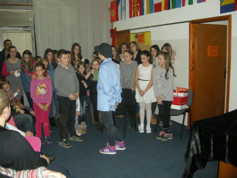 Čak 69 ih je imao - 19 za predškolsku djecu, 44 za osnovce i 6 za srednjoškolce. Učenici dopunske nastave slovenačkog jezika su mu priredili program. Govorili su o tome šta je sreća. U ovim danima, kada svi želimo sreću, često razmišljamo o tome, šta si zaista želimo. Da li je sreća mnogo novca ili mnogo slobodnog vremena? Dobri prijatelji ili zanimljive kompjuterske igrice? Učenici su predstavili misli pjesnika i pisaca i svoje želje. Djeca su srećna kada nemaju puno domaće zadaće, kada dobiju dobre ocjene a i tada kada idu u Sloveniju. Kada si mali, sreća je kada izabereš hrabrost i ne pustiš da te veliki straše. To su nam pokazali naši najmlađi učenici, koji su odigrali lutkovnu igru Zverjasec. Vidjeli smo i dramski prizor Kako je gospodin Filodendron tražio sreću. Priču je napisao Andrej Rozman Roza, a odigrali su je učenici iz Slatine. Kažu da samo srećan čovjek može usrećiti druge ljude. Ove večeri su djeca i Deda Mraz donijeli mnogo veselja među sve posjetioce koji su potpuno ispunili prostor Kluba nacionalnih manjina.