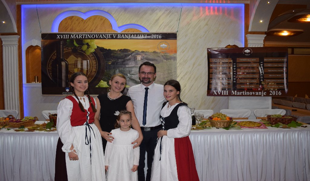 U restoranu Valentin smo, kao i proteklih godina, proslavili krštenje vina. Sa nama je, kao i uvijek, bilo mnogo gostiju: predstavnici Ambasade Republike Slovenije u BiH, zamjenik ambasadora Aljaž Zupan, konzul u Banjaluci, Marjan Ristič, savjetnik Marjan Cukrov iz Kancelarije Vlade Republike Slovenije za Slovence po svijetu, predstavnici Ministarstva prosvjete i kulture Republike Srpske, ministar nauke i tehnologije Jasmin Komić i predstavnici gradske uprave. Bili su tu i predstavnici Slovenačke iseljeničke matice, Instituta za slovenačko iseljeništvo i migracije, Društva za razvijanje dobrovoljnog rada Novo mesto, Gimnazije Ledina iz Ljubljane, biblioteke A.T. LINHARTA iz Radovljice, Kulturnog centra Banski dvor iz Banjaluke, predstavnici nacionalnih manjina, predstavnici iz slovenačkih udruženja u BiH, srpskih udruženja iz Slovenije i ostalih kulturno umjetničkih udruženja te članovi našeg udruženja.