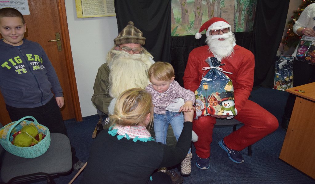Nakon programa smo pozvali Deda Mraza. Ove godine smo se iznenadili. Deda Mraz nije došao sam, sa njim je bio i Djed Božićnjak. Punu korpu poklona su donijeli, a u paketu nisu bili samo slatkiši, već je svako dijete dobilo i knjigu. Djeca su hrabro dolazila po poklone a fotografije sa oba dobra čovjeka će biti lijepa uspomena na novogodišnje očekivanje.
