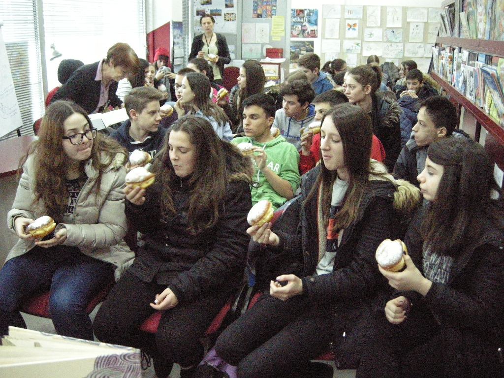 Februar nije samo mjesec kulture, već je i vrijeme kada maškare tjeraju zimu. Pošto se tada zasladimo krofnama, to se i predstavljanje Franca Prešerna završilo uz tu omiljenu poslasticu. Utiske sa događaja možete vidjeti na internet stranici Dječije biblioteke Borik: https://www.facebook.com/djecijabiblioteka.borik/