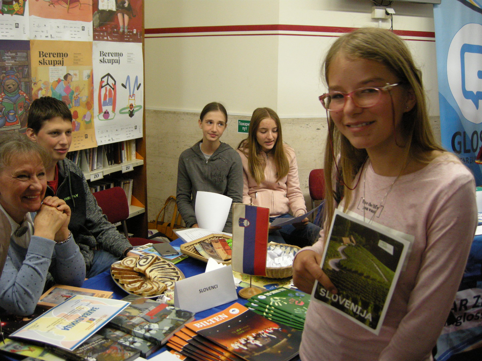 Udruženje Slovenaca Triglav i učenici dodatne nastave slovenačkog jezika su na sajmu jezika postavili štand na kojem su bili izloženi bilteni i dvojezične knjige, koje je izdalo Udruženje, a nije nedostajalo ni tradicionalnog slovenačkog slatkiša – potice. Plakatima Čitamo zajedno smo upozorili na to da u Sloveniji traje prvi Nacionalni mjesec zajedničkog čitanja. U njega su uključeni i Slovenci, koji žive u inostranstvu, a pripremamo se i za saradnju u evropskom projektu Udruženi u različitosti. Raspisan je i konkurs »I moj dom je dio Evrope«, a bogatstvo našeg kulturnog nasljeđa ćemo krajem oktobra predstaviti na zaključnom susretu u mjestu Pišece.
