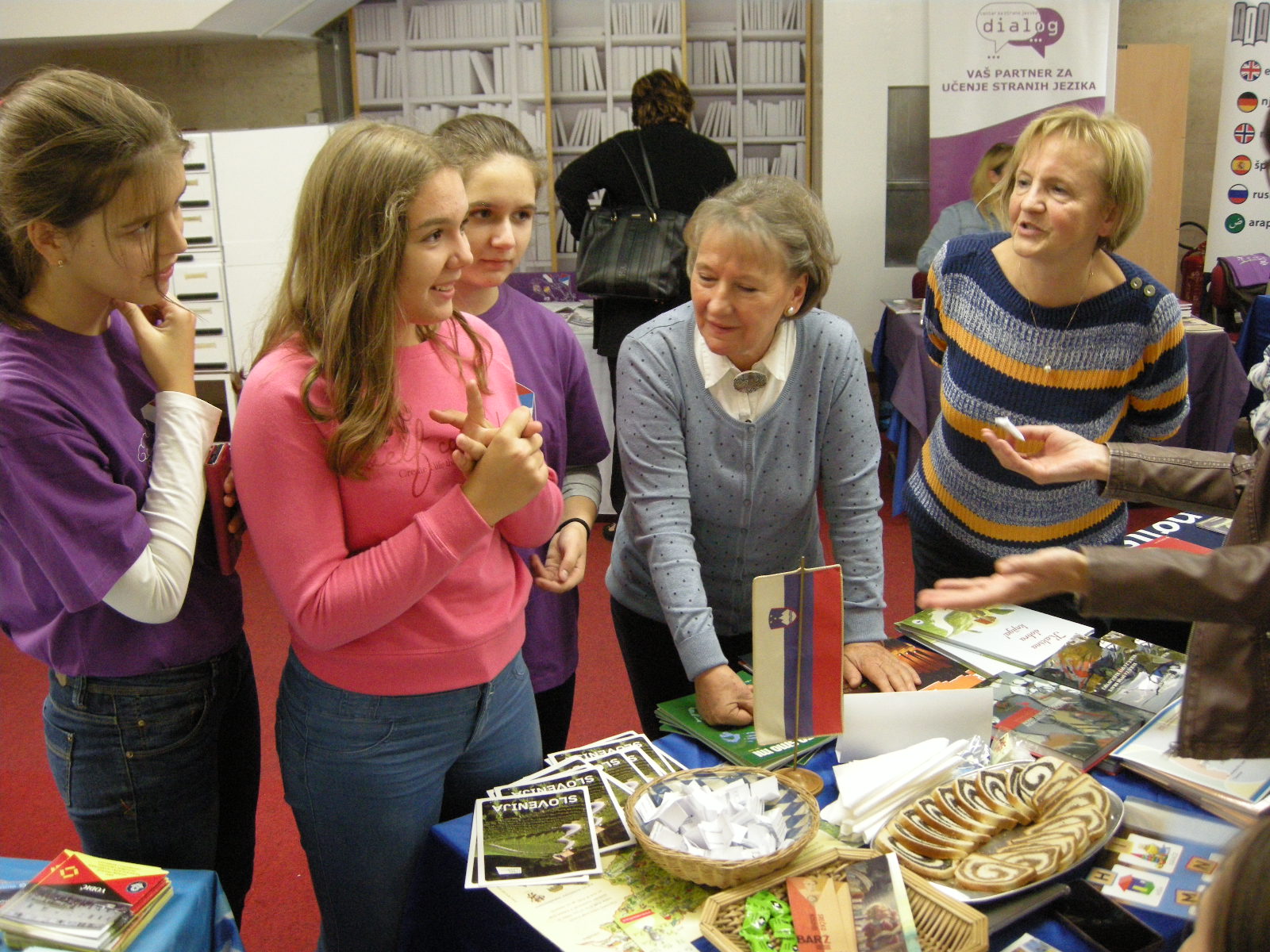 Pažnju posjetilaca smo privukli kvizom o Sloveniji i slovenačkom jeziku. Mladi i stari su odgovarali na pitanja, a svaki pravilan odgovor je bio nagrađen. Različitim događajima Slovenci u Republici Srpskoj pokazuju da mnogo ljudi govori slovenački jezik, a i samih učenika dodatne nastave slovenačkog jezika je više od stotinu. Znanje jezika mnogima pomaže pri studiju na slovenačkim univerzitetima i pri traženju posla. Višejezičnost je jedno od temeljnih načela Evropske unije, a u biblioteci smo pored slovenačkog i srpskog jezika čuli i ruski, njemački, italijanski, španski, francuski i švedski jezik.