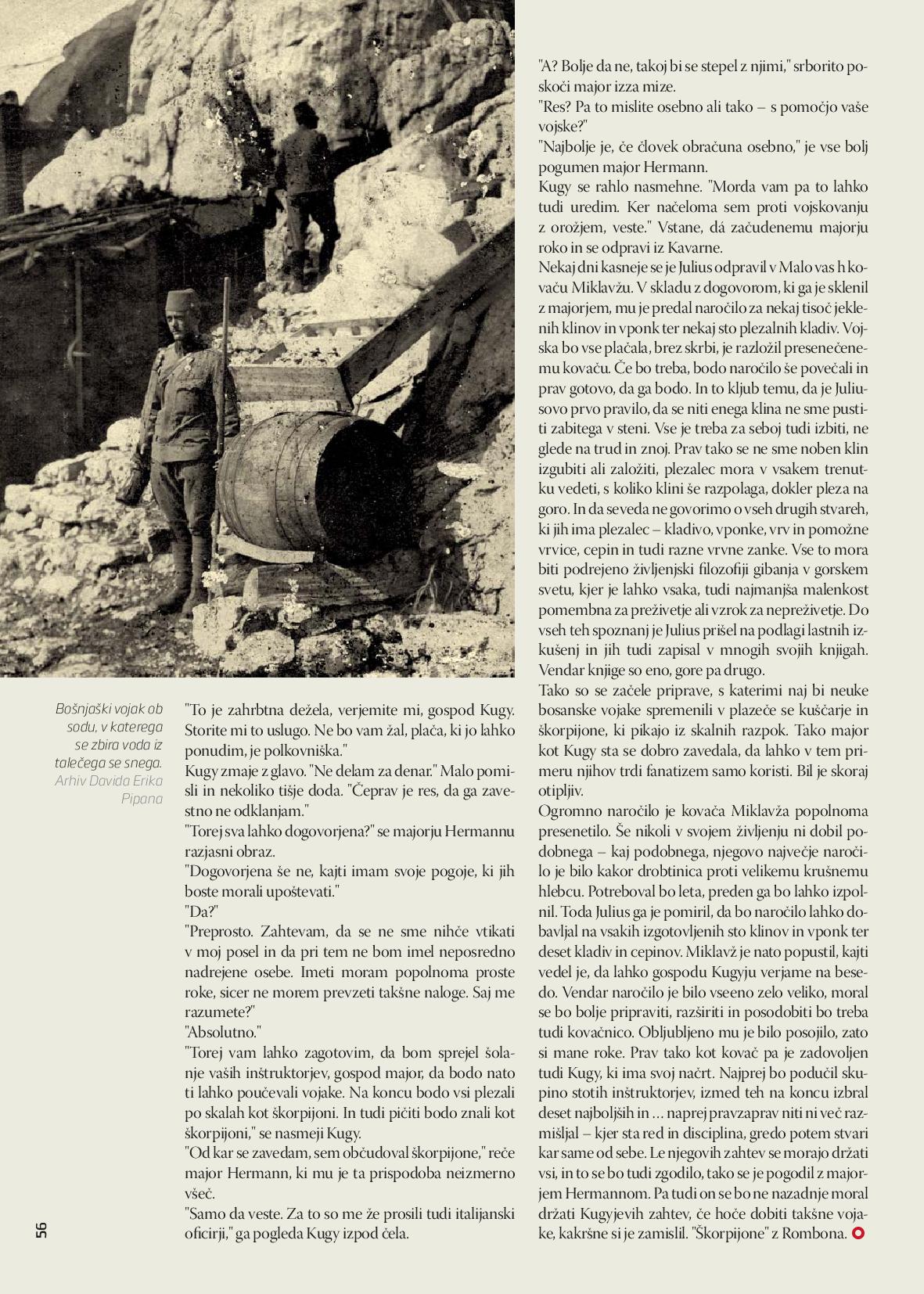 - Roman sam počeo „upoznavati“ u svojim mladim godinama, ne samo spisateljskim već i životnim dok sam živio na tome području Soče, Pjave, Julijskih alpa. Ali priča je mnogo složenija i opširnija, mnogo slojevitija, u nju su utkani mnogi likovi i njihovi životi. Imao sam građu kakvu niko možda nije imao, ona je godinama taložena, fermentirala tako da se se stvorila potrebna distanca od svake arhivske „zaparaloženosti i dosade“, pa se tok romana odvijao u skladu sa klasičnim konceptom: početka – i kraja. Posebno su zanimljivi razni likovi, od onih domaćih, usorački, podgrmečkih i potkozarskih do sasvim drugih i drugačijih iz raznih zemalja, a koje sam lično ili posredno upoznao. Naime, gore gdje sam bio, susretao sam mnoge aktere tih ratnih događaja, bili su to oficiri i soldati koji su svake godine dolazili da obiđu mjesta na kojima su ratovali i nekim čudom ostali živi. Među njima mnogi iz naših krajeva, sela i gradova. Ti junaci su mi se uselili u život da sam sa njima, svakodnevno se družio, vodio razgovore, oni su me budili noću, nisu dali da spavam, često su mi predlagali razne stvari i ideje u romanu pa sam imao više rješenja za koja sam morao da se odlučim. Veoma sam im zahvalan za te besane noći, skoro desetogodišnjeg pisanja romana. Bilo je tu i nevjerovatnih scena, da, kroz proces pisanja romana.