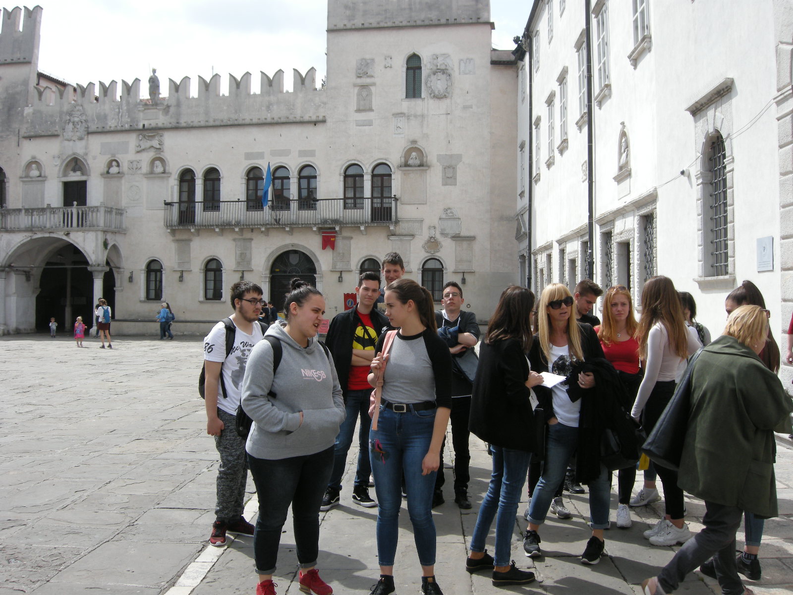 U utorak, 23. aprila, se autobus, pun djece, mladih i odraslih, zaustavio ispred Osnovne škole Kopar. Tamo je zaposlena Mojca Jelen Madruša, voditelj projekta Izazovi međukulturnog suživota, koja je zajedno sa kolegicama iz Srednje tehničke škole i Srednje ekonomsko-poslovne škole pripremila program posjete naših učenika. U dvorani škole su nas pozdravili direktor OŠ Kopar Anton Baloh i direktor Srednje tehničke škole Iztok Drožina. Učenici OŠ Kopar su se predstavili kratkim kulturnim programom, a nakon toga su naši učenici saznali ono što ih je najviše zanimalo – kod koga će boraviti. Učenici su sa vršnjacima otišli kući i proveli popodne i veče uz aktivnosti, kojima se mladi bave u slobodno vrijeme. Naredni dan su bili zajedno na nastavi, a uz more onda prošetali prema Izoli. Naveče su u Srednjoj tehničkoj školi Kopar imali društveno veče.