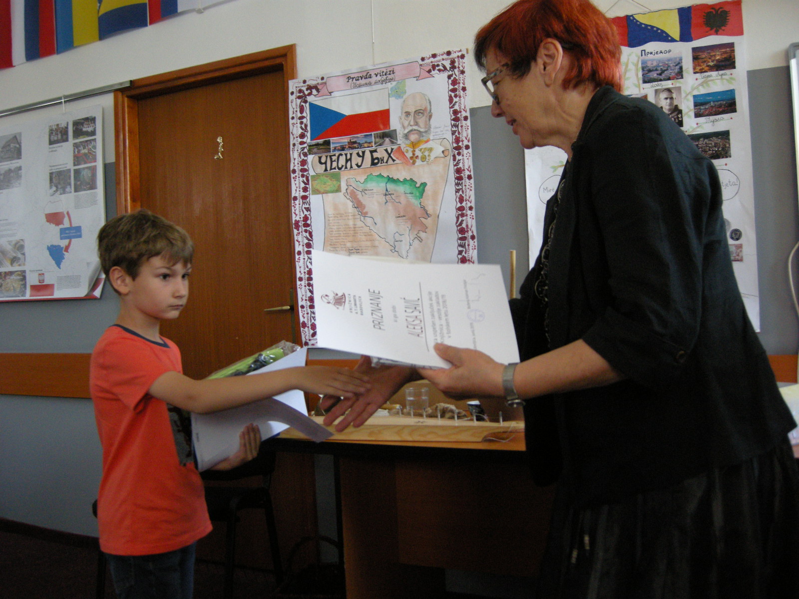 Ljoba Jenče je pripremila program u kojem smo svi aktivno učestvovali. Najhrabriji u pjevanju su bili najmlađi koji su tek počeli učiti slovenački jezik. Upravo u ovoj grupi je mnogo onih koji nikada ne propuštaju nastavu, a pored potvrda za pohađanje nastave, dobijaju i nagrade. Među njima su i marljivi čitaoci. Dobili su nagrade od udruženja Čitalačka značka Slovenije i nagrade za učešće u projektu Biblioteka – vasiona blaga. Predstavila ga je direktorica biblioteke Antona Tomaža Linharta iz Radovljice, Božena Kolman Finžgar, koja uvijek osigurava da našim učenicima ne ponestane materijala za čitanje.