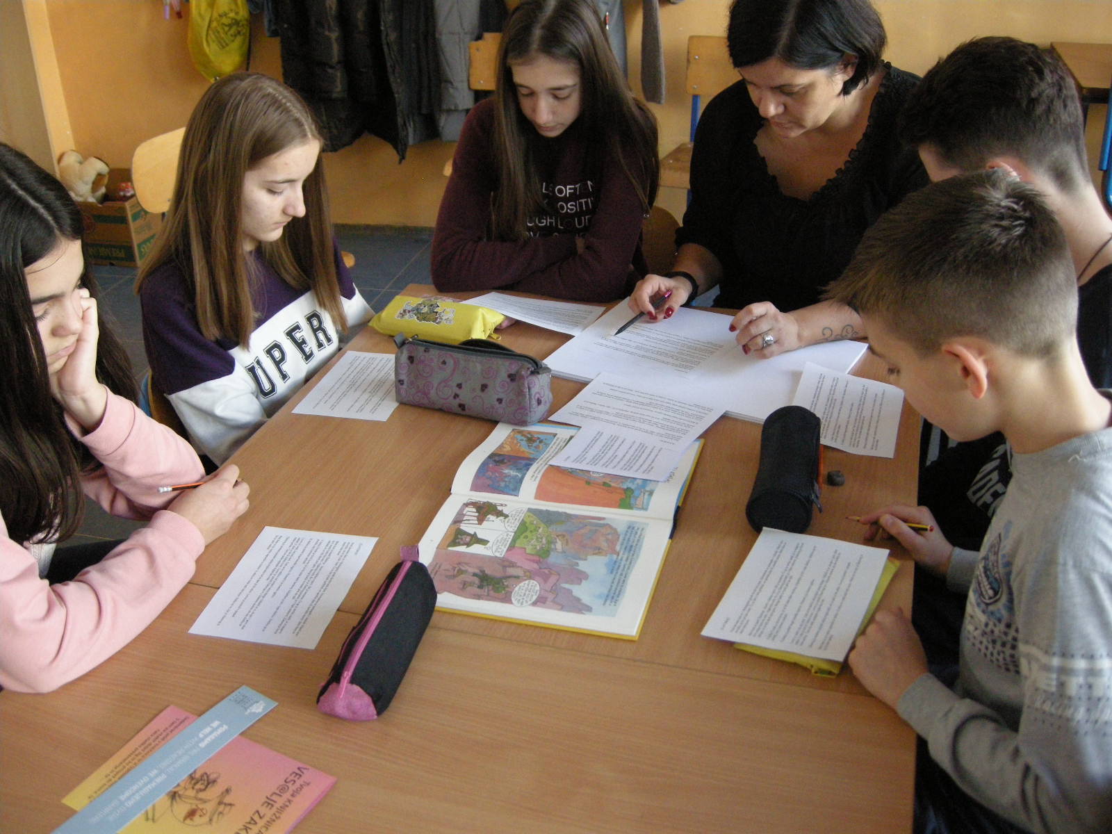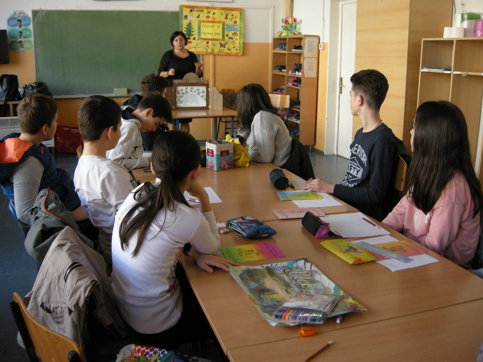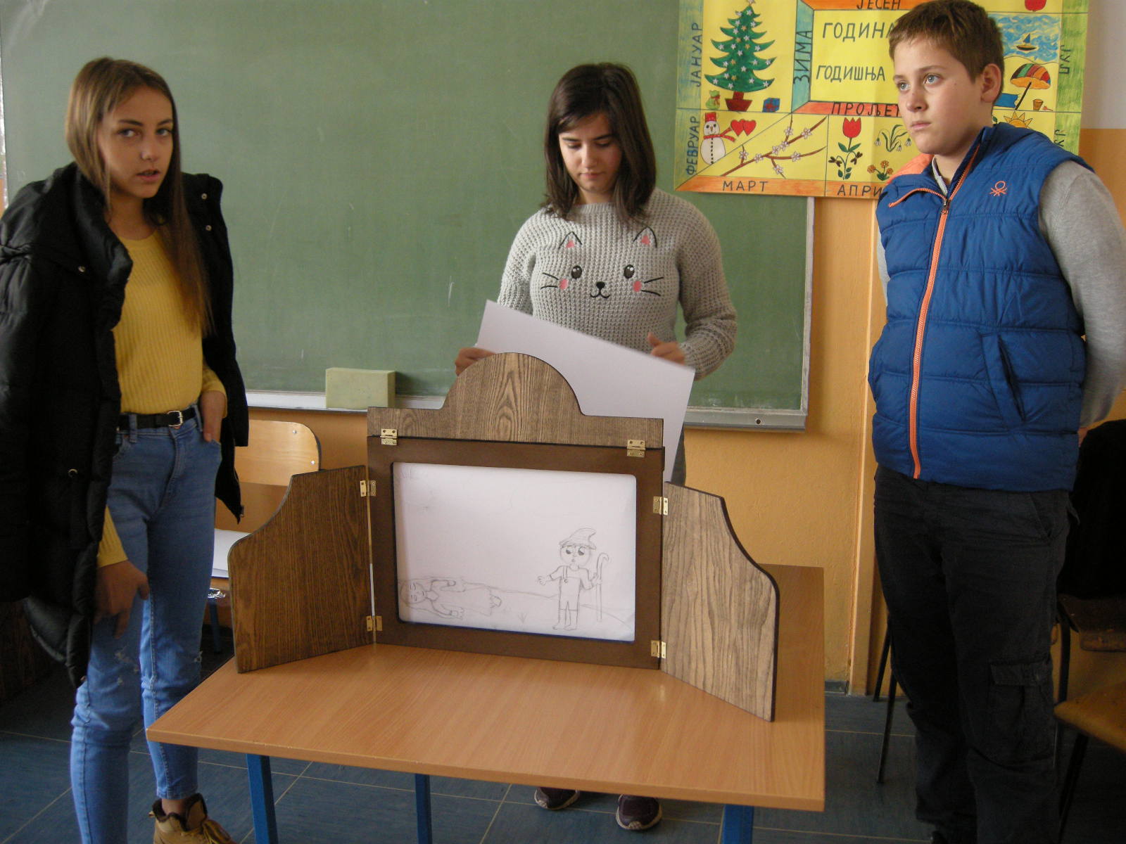 Katja Bevk i Božena Kolman Finžgar iz biblioteke Antona Tomaža Linharta Radovljića donijeli su butaj u Banjaluku i u subotu, 23. novembra, tri grupe učenika oprobali su se u kreiranju slika za pripovijedanje. Odabrali smo poznate bajke: onu o rukavici koju je izgubio Djed Mraz a u nju se naselile životinje, o Djedu Mrazu, koji se zaglavio u dimnjaku, o krojačici i njenim čarobnim makazama, o Zlatorogu – jarcu sa zlatnim rogovima koji je besmrtan, priču o Petru Klepecu i legendu Bledskog jezera. Najmlađi su crtali prizore pjesama koje govore o zimskim i novogodišnjim običajima. Svi učenici pokazali su puno kreativnosti i upornosti. Neki su se već testirali u pripovijedanju uz slike, drugi će još uvek vježbati pripovijedanje priča a svoje slike će morati nacrtati. Oni će u subotu, 14. decembra, nastupiti na događaju na koji se pripremamo kada dođe Djed Mraz.