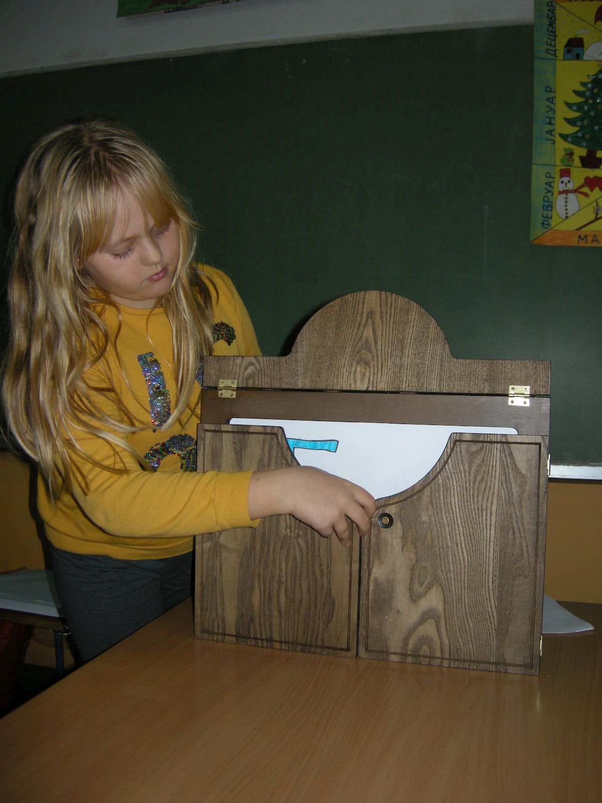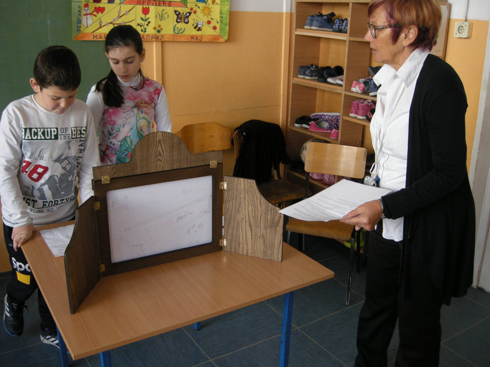Kamišibaj radionica bila je dio projekta Biblioteka – vasiona blaga. Na početku nas je Katja Bevk upoznala s ovom vrstom pripovijedanja, ispričala nam je njemačku narodnu bajku Mamka Bršljanka. Bibliotekarke iz biblioteke Antona Tomaža Linharta iz Radovljice dolaze u Banjaluku već šest godina i uvijek pripreme nešto zanimljivo. Uvodni jesenji susret namijenjen je svake godine za kreativne radionice i poticaje za naše učenike da pročitaju što više. Na kraju školske godine dodjeljuju nagrade najboljim čitaocaima, donoseći knjige za čitanje za sve tokom ljeta. Kontakt s pisanom riječju vrlo je važan za one koji ne žive u okruženju u kojem bi se svakodnevno govorio slovenački, pa nam je drago što sarađujemo s bibliotekom Antona Tomaža Linharta iz Radovljice. Radionicom kamišibaj potaknuli smo učenike na pripovijedanje i izražavanje svoje kreativnosti prilikom crtanja. Originalni proizvodi potvrđuju da su učenici iz Banjaluke, Slatine i Teslića uživali u radu. Sada se već vesele da će svoje proizvode predstaviti na novogodišnjoj priredbi.