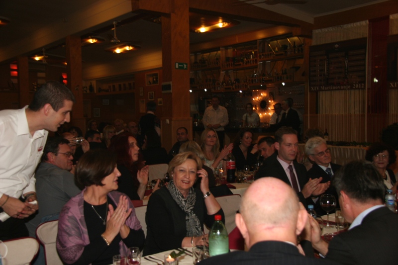 Stariji članovi su se potrudili da proslavu pripremimo, a naši mlađi članovi, učenici dopunske nastave slovenačkog jezika su se, zajedno sa učiteljicom Barbarom, pobrinuli da svojim nastupom uvedu sve nas u početak praznovanja. Sve je išlo po zacrtanom planu, samo je mošt teže klizio niz grlo, ali ne zadugo. Sv. Martin iz Novog mesta je zajedno sa kumovima krstio mošt i svi smo, punim čašama i pjesmom , koju je zapjevao hor „Davorin Jenko“, nazdravili rođenju mladog vina.