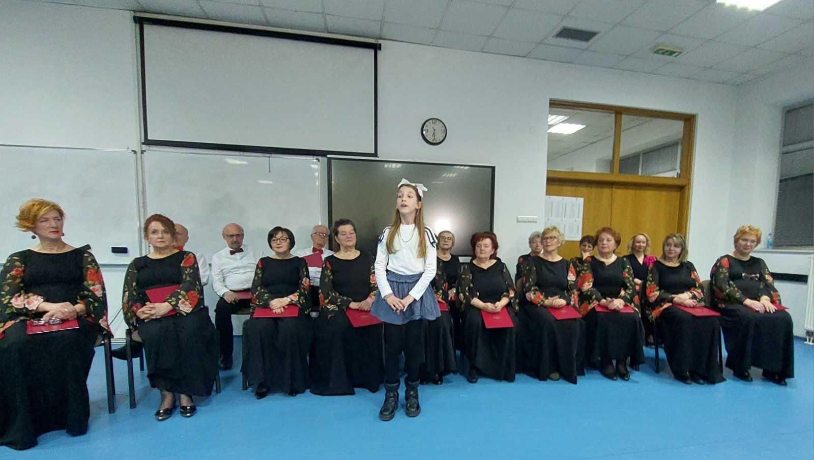 Pozdravio nas je i predsjednik Slovenačke iseljeničke matice dr Boris Jesih, koji je u Banju Luku došao sa predstavnicima Slovenačkog prosvjetnog društva iz Klagenfurta. Na ljepotu slovenačke riječi u kratkom recitalu skrenuli su nam pažnju studenti slovenačkog jezika na Filološkom fakultetu. Sonja Marinković, Tamara Džatić, Dragana Dragičević Cvjetković, Mario Ćulum i Zoran Vručinić čitali su pjesme Toneta Pavčeka, Saše Pavček, Ferija Lainščeka i Ivana Minattija.