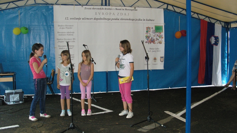 Ovogodišnji susreti učenika dopunske nastave slovenačkog jezika u BiH su se održali u Slatini kod Banje Luke u subotu 4.juna i nedjelju 5.juna 2011.godine. Susreti se organizuju već 12. put i već odavno su tradicionalni, a od 2010.godine se održavaju u okviru Saveza slovenačkih društava u BiH „Evropa sad“. Održavanje manifestacije su finansijski pomogli Kancelarija Vlade Republike Slovenije za Slovence po svijetu, Ministarstvo prosvjete i kulture Republike Srpske i Grad Banja Luka. Susreti su počeli 4.6. pozdravnim govorom šefa Konzularne kancelarije Ambasade Slovenije u Banjoj Luci Aladara Beleca, nakon čega su se prisutnima obratili viši savjetnik iz Kancelarije za Slovence po svijetu Aleš Selan, te predstavnici Ministarstva za obrazovanje i sport Republike Slovenije Melita Steiner i Zavoda Republike Slovenije za obrazovanje Dragica Motik. Nakon toga su nastupili učenici dopunske nastave slovenačkog jezika u BiH i to recitacijama, pjesmom, glumom, muzikom i igrom. Učenici su odlično spremili program i pokazali šta su sve naučili u toku prethodne godine.
