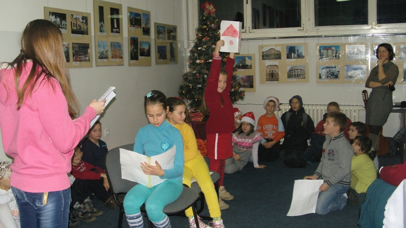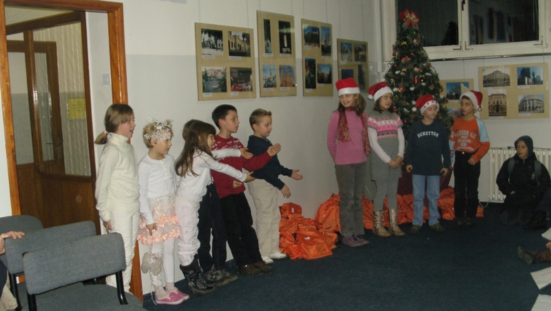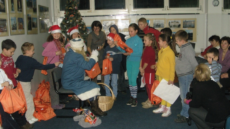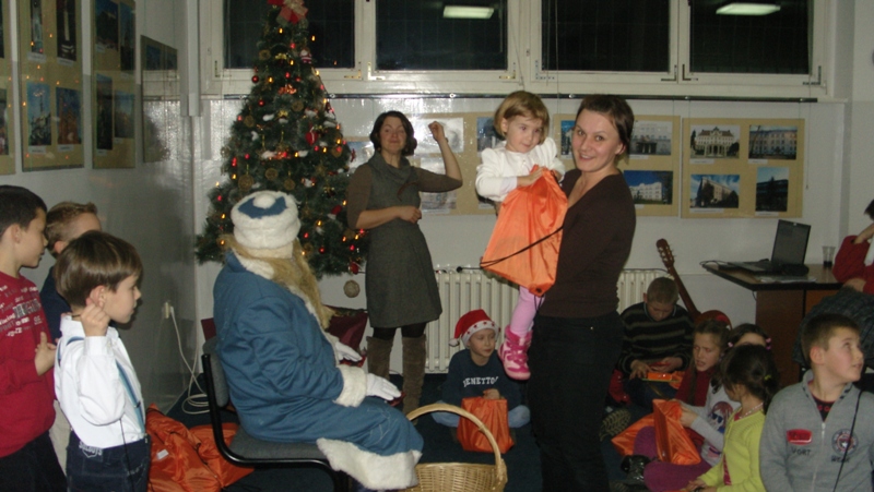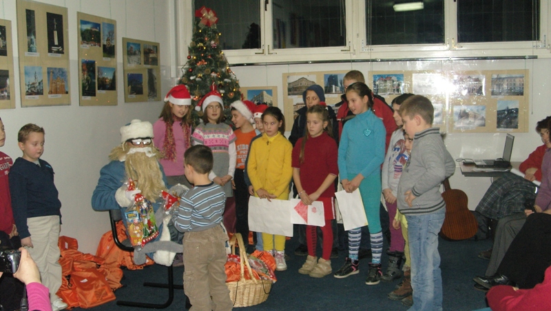 On Friday, 23 December 2011 on the premises of the Association pupils of the supply teaching lessons were visited by Santa Claus. Children received him by singing and playing Aleksandar’s colours and Where are snowflakes while he gave them presents and spoke to them a little.
