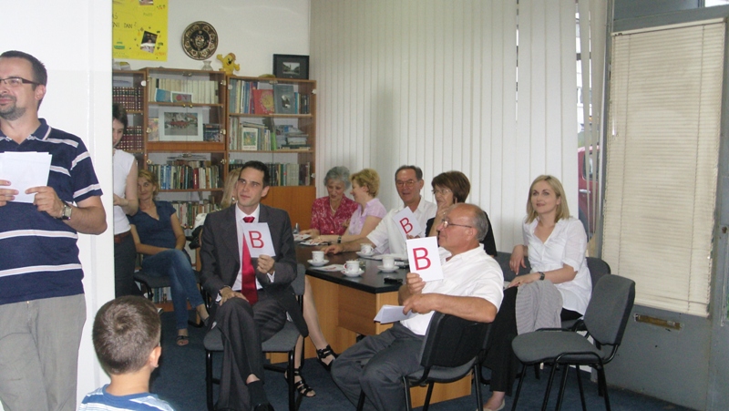 The teacher asked questions to both parents and guests who came to attend the final lesson. She asked them about some facts about Slovenia, characteristics and well known things about the country of their ancestors. The adults learned a lot but we must admit they were good at answering the questions. This time a representative of the Embassy of Slovenia in BiH Mr. Matija Bučar joined us together with his wife.