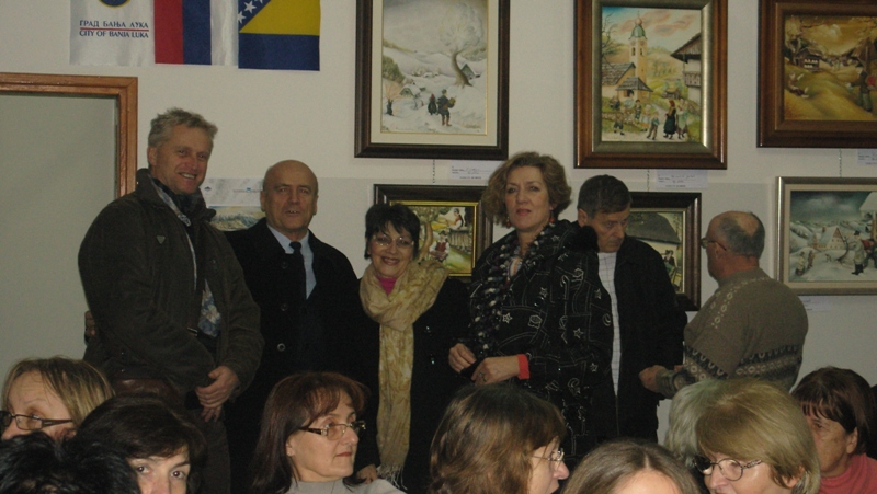 Motives for paintings, as the author himself stated, are found in near and far vicinity of places and people. He gets the inspiration from already existing paintings by well-known authors e.g. Martin Gaspari and others, whose works we can find all over the world. Simon Šubic paints country legends, customs, people and, in his own manner, wherever his exhibition is organised, along with a song, transfers part of richness of Slovenian culture. Mrs. Vesna Vukšinič Zmaić, general secretary of SIM greeted all the attendees on behalf of SIM whereupon Head of Consular Office in Banja Luka Branko Zupanc commended close cooperation between our Association and SIM in the implementation and successful organisation of the exhibition on the occasion of marking the Slovenian cultural holiday. On that occasion, he invited the attendees to enjoy the exhibition, which gives versatile view to the past, country legends, customs and people. Having said that, he opened the exhibition.
