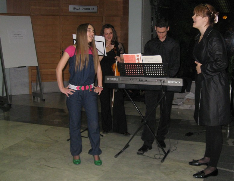 Our young, talented mezzo-soprano Aleksandra Bilanović performed Mojčina pjesma from the Kekec movie and a song Za Slovenijo živim. Background performance was delivered by members of Trio Fantastico, Lidija Paulin (cello), Sonja Vojvodić (violin) and Dejan Janković (piano). More than a successful performance of our musicians got the best reviews and strong applause. Our members presented themselves to all the guests during the refreshment after the official part of the programme but this time they performed Slovenian pop songs.