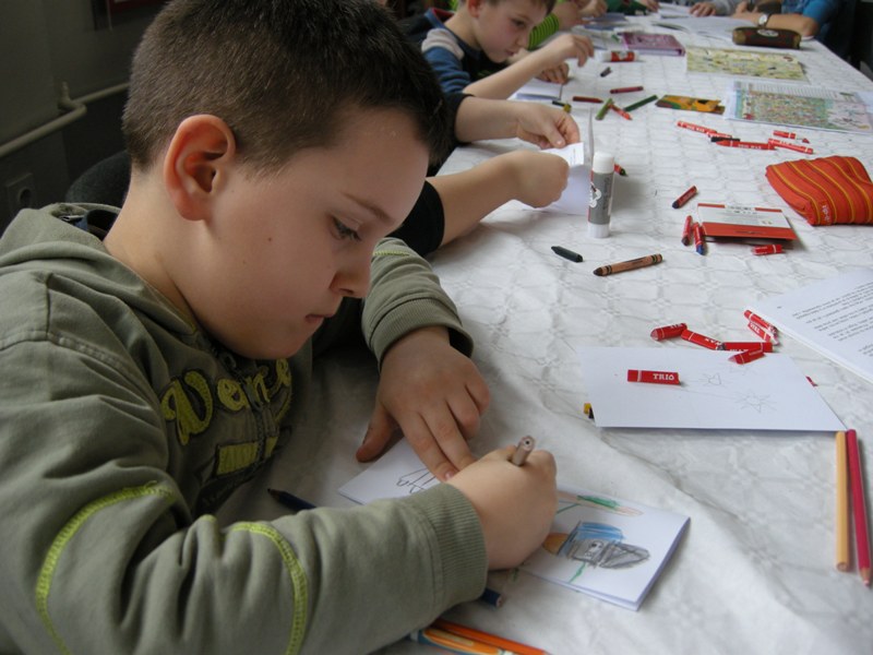 In the workshop lead by Aleksandra and Marina, children painted eggs – not the real ones but those made of paper. They glued them to cardboard, thus making beautiful posters. Franci taught the workshop participants how to shape rabbits and pretzels of pastry, while skilled children’s fingers also made fish. They baked it all and some of them even ate their art work immediately. During the fourth workshop we made invitations for performance »A balloon can also be my umbrella«. The performance will be prepared by students of supply teaching lessons of Slovenian and lead by puppeteers Jelena Sitar and Igor Cvetko. We can already invite you to fly away with us on 12 May to the Land of Hats. The performance will take place in theatre »Jazavac« at 11.00hrs.