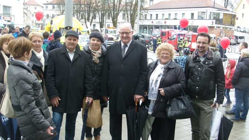 Upon the invitation of Mrs. Branka Bukovec from the Society for the Development of Voluntary Work Novo mesto, members of Executive Board of the Association of Slovenians “Triglav”, visited Novo mesto and attended some events organised on that occasion, such as traffic– prevention show “Not to happen” . The event was held on 6 April at Novi trg and was organised by Society for increased security in traffic and was primarily intended for elementary school and high school students. In addition to numerous preventive animations the visitors had the opportunity to watch the reconstruction of a traffic accident between a passenger car and a motorbike where drivers were seriously injured. The entire course of action was shown – from the arrival to the scene of accident, calling 112, to intervention by emergency teams involving ambulance, fire-fighters, police and finally tow-vehicles. The event was also attended by President of the Republic of Slovenia. Representatives of Triglav had the opportunity to briefly meet with Mayor of Novo mesto Mr. Alojizije Muhič.