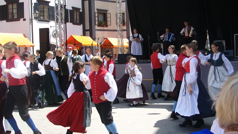 Office of the Government of the Republic of Slovenia for Slovenians Abroad has organised again this year gathering of compatriots from abroad and homeland. In history centre of Škofja Loka our members of the folklore group under the mentorship of Ms. Majda Nemanič made a performance on Saturday, 5 July 2014.