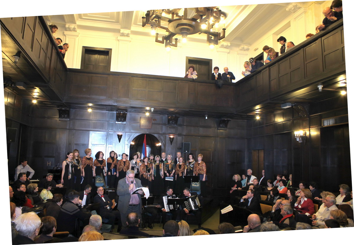 Interest is high for such a concert. The small hall is always filled with people and often if happens that it cannot take all those who would like to attend the concert andbeside songs, listen to aphorisms, guest poets and renown singers. Therefore, on Monday 23 February 2015 at the concert “Veče uz prim” guests of the popular ensemble were also singers of our Mixed choir “Davorin Jenko”. They sang two Slovenian folk songs. The audience was in good mood and they strongly applauded them for their efforts, love for singing and especially commitment by conductor of choir “Davorin Jenko” Vanja Topić, MSc.