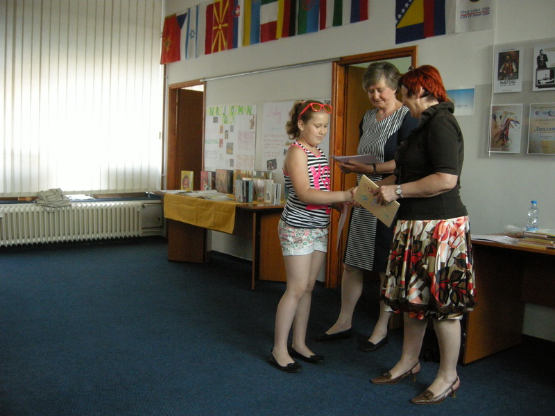 Children from four groups attending lessons in Banja Luka and Slatina received certificates and commendations, while each pupil got the bulletin “To smo mi”. If you go through the bulletin, you can see that we have been quite diligent in this school year. Pupils regularly attended lessons, socialised at the excursion, at creative workshops and at two gatherings of students from all over BiH. We also presented the book “Kakva dobra knjiga”, hosted Slovenian artists, took part at the Ciciban and Pil’s Fun School and quiz Male sive ćelije and Mega kviz.