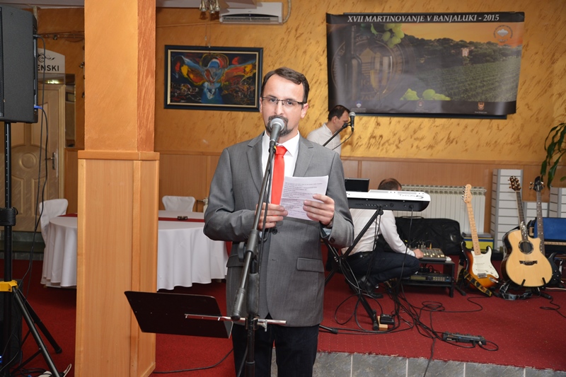 Vice-president of the Association Triglav Banja Luka Mladen Lunić made a short speech about the importance of celebrating and the desire of Slovenians of Banja Luka to mark, preserve and celebrate with friends the old Slovenian custom, baptizing wine. The acknowledgement does not go only to the Association Triglav, but also many donors who always make possible this organisation.