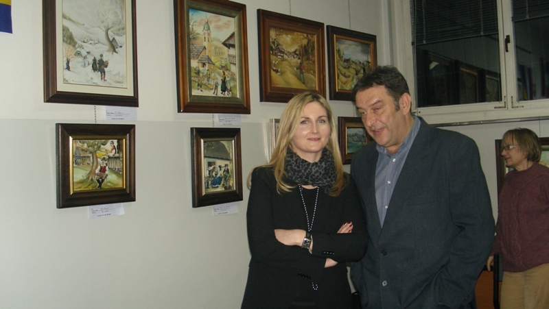 Motives for paintings, as the author himself stated, are found in near and far vicinity of places and people. He gets the inspiration from already existing paintings by well-known authors e.g. Martin Gaspari and others, whose works we can find all over the world. Simon Šubic paints country legends, customs, people and, in his own manner, wherever his exhibition is organised, along with a song, transfers part of richness of Slovenian culture. Mrs. Vesna Vukšinič Zmaić, general secretary of SIM greeted all the attendees on behalf of SIM whereupon Head of Consular Office in Banja Luka Branko Zupanc commended close cooperation between our Association and SIM in the implementation and successful organisation of the exhibition on the occasion of marking the Slovenian cultural holiday. On that occasion, he invited the attendees to enjoy the exhibition, which gives versatile view to the past, country legends, customs and people. Having said that, he opened the exhibition.