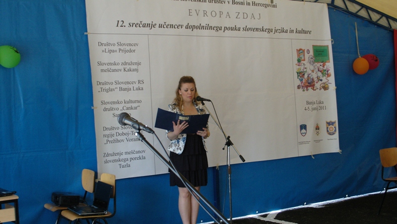The event started on 4 June by the speech of Head of Consular Office of Embassy of Slovenia in Banja Luka Aladar Belec, whereupon the attendees were greeted by senior advisor from the Office for Slovenians Abroad Aleš Selan and representatives of Ministry of Education and Sport of the Republic of Slovenia Melita Steiner and the Education Institute of the Republic of Slovenia Dragica Motik. Thereupon, students of Supply Teaching Lessons in BiH presented themselves through recitals, songs, acting, music and play. Students prepared very well for the programme and also showed what they had learned in the previous year.