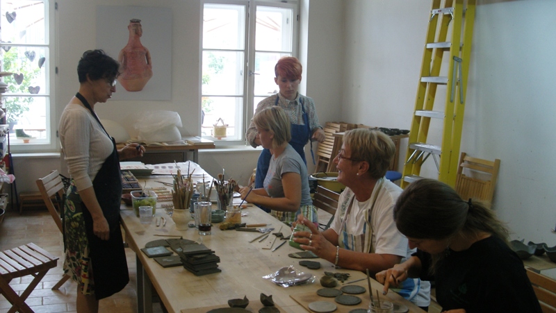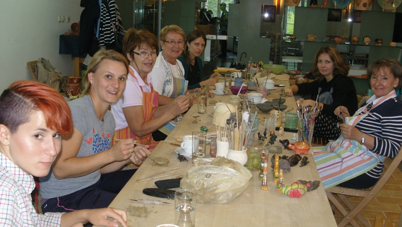 Reception, organisation throughout our three-day stay in Ljubljana and patience of our mentor, artist Eva Petrson Lenassi deserves the entire prize. Mentor Eva Peterson Lenassi is very experienced in shaping ceramic objects. During our stay, together with our mentor we visited Slovenian Ethnographic Museum. We learned a lot there, especially about Slovenian ethnographic heritage and also got our inspiration for further creation.