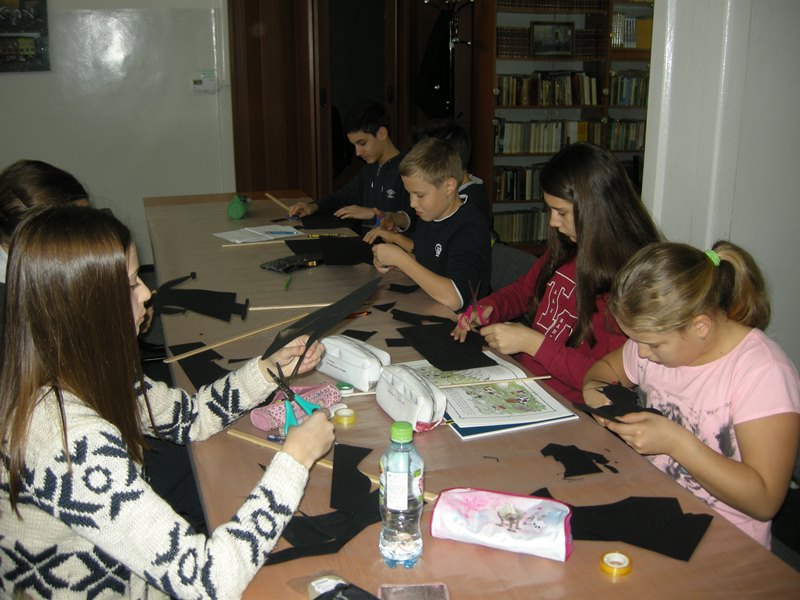They prepared workshop Library – Universe of Treasure for pupils. We made shadow puppetry for plays that will be used when the Santa Clause pays us a visit. The youngest made a bird and flowers for the scene “Why is spruce green also during winter”, the other group of pupils prepared puppetry for the play “Four players on strings”, and the third group got familiar with a known Slovenian fairy-tale “Peter Klepec”. In a pleasant atmosphere interesting puppetry was made and immediately tested. The shadow theatre will enhance our activities as it was proven that art creativity has a strong influence on children language development.