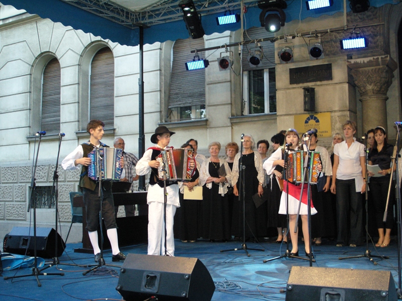 On 21 May, national minorities in Banja Luka organised a show in the centre of Banja Luka. Slovenians from Banja Luka were presented by the Mixed Choir Davorin Jenko, students of the Supply Teaching Lessons of the Slovenian Language, as well as pupils from Elementary School “Ivan Cankar” from Trbovlje, members of a music group “Popotniki”, a young accordion player and a theatre artist from the studio “Anima” Medvode-Ljubljana. We, the Slovenians, presented ourselves at a stand with our national meals and beverages, where the young accordion player from Novo mesto invited curious passers-by to dance.