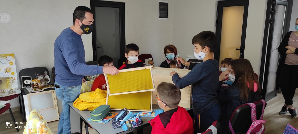 This year's World Bee Day was marked by the visit of a beekeeper to the Association of Slovenian Triglav in Banja Luka, on May 22, 2021. He brought a beehive, beekeeping clothes and beekeeping supplies. The students learned how a beekeeper inspects a beehive and learned many interesting things about bees. Each student was given a flower that (s)he later planted at home. By taking care of honey plants, we help bees to have enough food.
