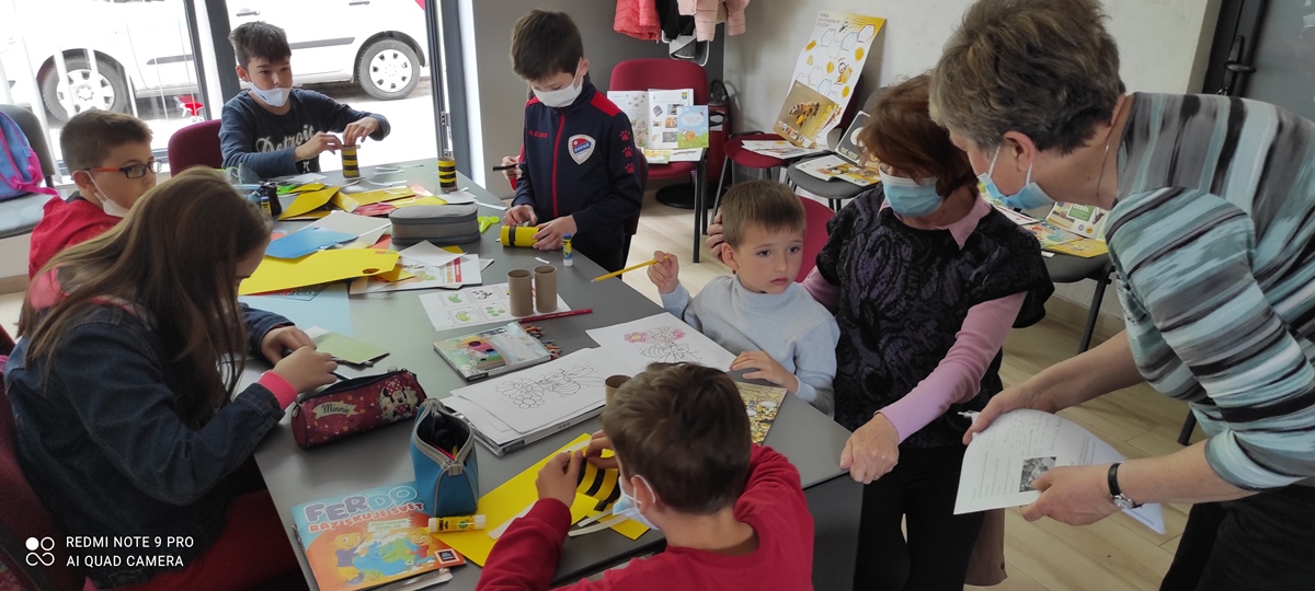 After the beekeeper’s visit, the children had the opportunity to create. They drew bees, made finger puppets in the shape of a bee and paper bowls. Fly, bees, and pollinate flowers! And give us honey!