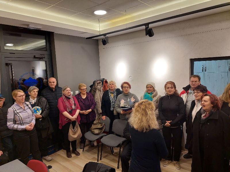 The time was too short for longer socializing. The wish of the guests was to visit the Trappist monastery. This was followed by a tour of our new premises. We talked with the minister about problems that we cannot solve on our own and about our future plans. Let me mention just a few issues. Telekom Republika Srpska canceled the first program of RTV Slovenia. We were left without the program that we followed every day. We are deprived of many things that happened and are happening in our homeland. We know that Slovenia will have elections. Years ago, we who live abroad also voted. We have ballots. We sent our votes by mail, but this is a big expense on our modest income. The consular office of the Republic of Slovenia is located in Banja Luka. There may be a possibility to perform our civic duty at the consular office. Our interlocutor, Mrs. Jaklitsch, listened to us. She understood everything we talked about. We were surprised by her tolerance and directness. She found time to talk to each of us. In addition to everything that was happening, there was also the unexpected arrival of our choir. Thank you to all our guests for their visit, and our gift to the minister, the symbol of the gallery painting, the blue embroidery, which UNESCO included in the cultural heritage of our second homeland. Our association also received a gift, this time the symbol of Triglav - the Aljaž tower. Hoping that we who are not mountaineers but like to sing and dance can also visit it. Singing always brings people together, and this time it was no exception. A Slovenian song was sung by our choir together with the minister, experienced singer Zvone Žigon, and I also joined. Too little time, too much desire. It was high time to relax. We did so at the Kazamat restaurant. A short meeting, wonderful weather, successful conversations and finally the Slovenian song Siva pot. Good luck until we meet again in Slovenia.