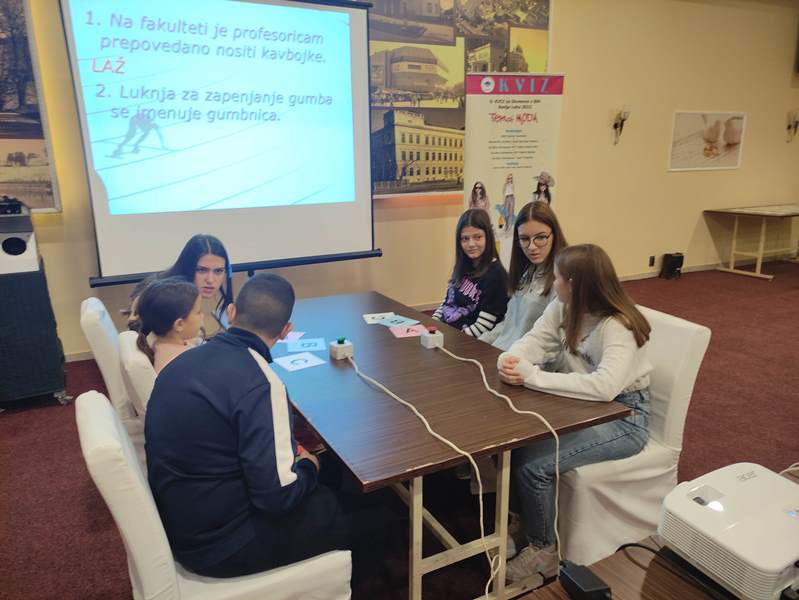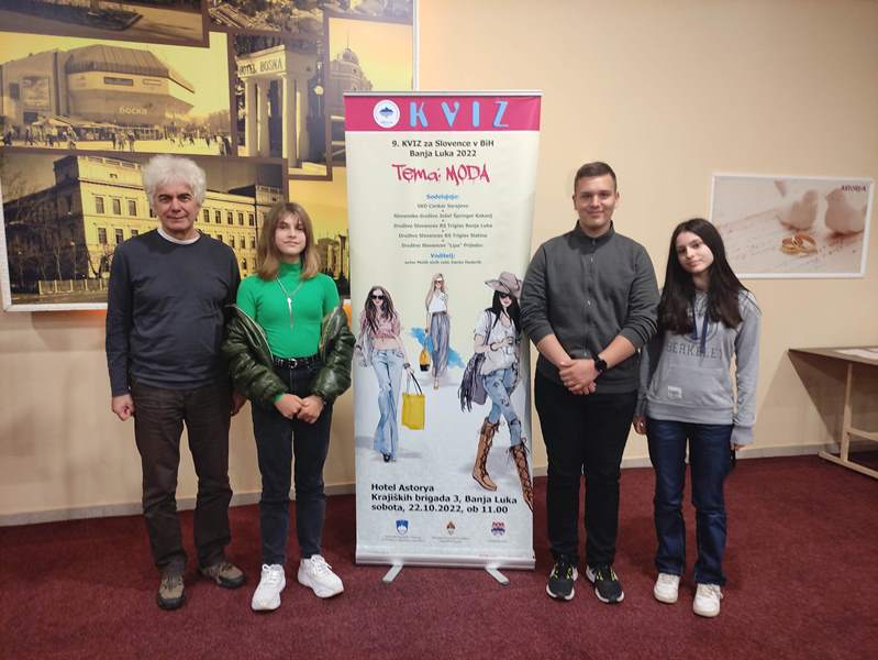 Pupils from Sarajevo, Kakanj, Prijedor, Slatina and Banja Luka took part in the quiz. The theme of this year's quiz was fashion - clothes, shoes, materials and professions related to fashion. The moderator of the quiz this year was Darko Hederih, a Slovenian creator of quizzes for the youth and the adults. The pupils were divided into six groups. Pupils from Banjaluka (two groups) and Sarajevo competed in the semi-finals. In the end, the hosts of the quiz won first place. By the way, the purpose of the annual meeting of students at the quiz is socializing and speaking Slovenian, and that was the case this year as well.