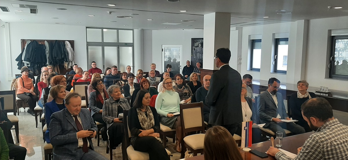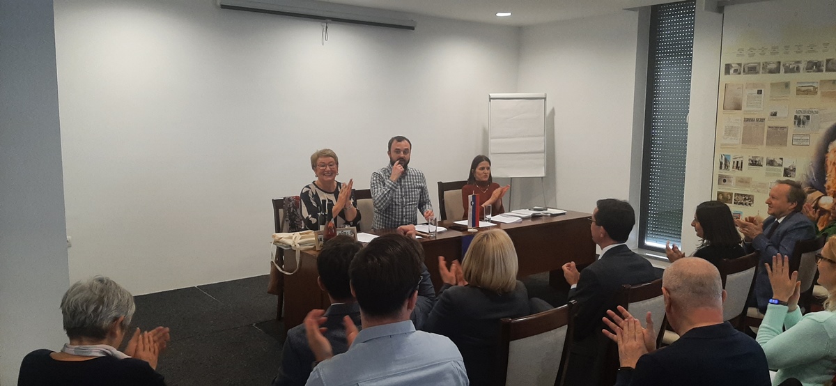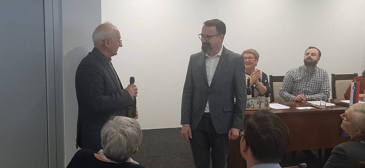 After all items on the agenda were exhausted, the Deputy Ambassador of the Republic of Slovenia to BiH, Zvone Žigon, addressed the assembly, conveyed the greetings of H.E. Damijan Sedar, Ambassador of the Republic of Slovenia to Bosnia and Herzegovina, and expressed his satisfaction with the election of the new leadership, especially considering the difficult period that is behind us and that is the loss of the long-time president Marija Grbić, who was the true initiator of the work and activities of the Association. He praised the work of the Association and pointed out that the 106 activities carried out in the last three years make this Association one of the most active not only in Bosnia and Herzegovina, but also in the region and in Europe. He reiterated that the Association has the full support of the Embassy of the Republic of Slovenia in Bosnia and Herzegovina and presented a symbolic gift to the Association.