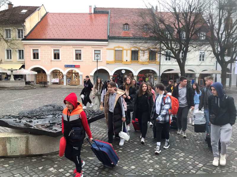 The day before, on April 13, the folklorists arrived in Novo Mesto and, as planned, in the afternoon hours, at the "Janez Trdina" Cultural Center, they had rehearsal with Tomaž Simetinger, PhD, the author of the current choreography they are performing. The exercises carried out were of great importance for the group and the preparation for the performance, and they were realized as part of the cooperation and support of the Association for the Development of Voluntary Work from Novo Mesto. As part of the visit, young folklorists from Banja Luka and Slatina had the opportunity to get acquainted with the main sights of the old city center of Novo Mesto, but also to visit the agricultural estate of the Grm Biotechnical High School, where they got to know their way of working and the possibilities of acquiring knowledge for their students.