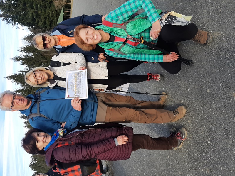 We walked a little more, went to the ski slope, chatted with friends we met and enjoyed the beautiful nature. Around three o'clock we headed to the bus where our hosts presented us with a Certificate of Appreciation for participating in the march. It was time to take pictures again. We got out in Rajkovići where our car was parked. Our dear friend Mara made a big bowl of hot donuts, and Dragan served us drinks.